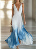 Maria™ | Elegant Maxiklänning i Plisserad Chiffon med V-ringning – Vit med Blå Ombre